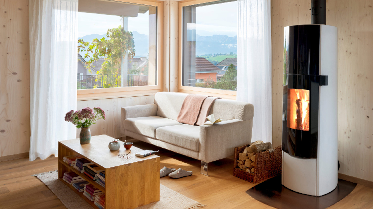 Wie kein anderer verbindet T-SKY Ökologie, Innovation und Design auf sensationelle Weise. Die großzügige, einteilige Glasfassade ergänzt dieses elegante Design perfekt und bietet aus jedem Blickwinkel ein faszinierendes Erlebnis am Feuer. Zusätzlich zu den patentierten Stärken der eco2-Baureihe ist die Modellvariante T-SKY DUO mit dem bewährten Konvektionsmodul für höhere di- rekte Heizleistung ausgestattet. Eine weitere Besonderheit ist, dass alle T-SKY-Modelle mit einem Zündhebel ausgestattet sind, der den Zündvorgang bei schlechter Zugluft oder schwierigen Wetterverhältnissen erleichtert. Wie bei allen Tonwerk-Speicheröfen stehen viele Elemente zur Verfügung, um den Ofen individuell zu gestalten, wie z.B. die handgefertigte Steinverkleidung, der variable Rauchgasabzug und die 360°-Drehscheibe, mit der der Ofen um die eigene Achse gedreht werden kann. Garantierte Wärmespeicherung von ca. 10 Stunden.