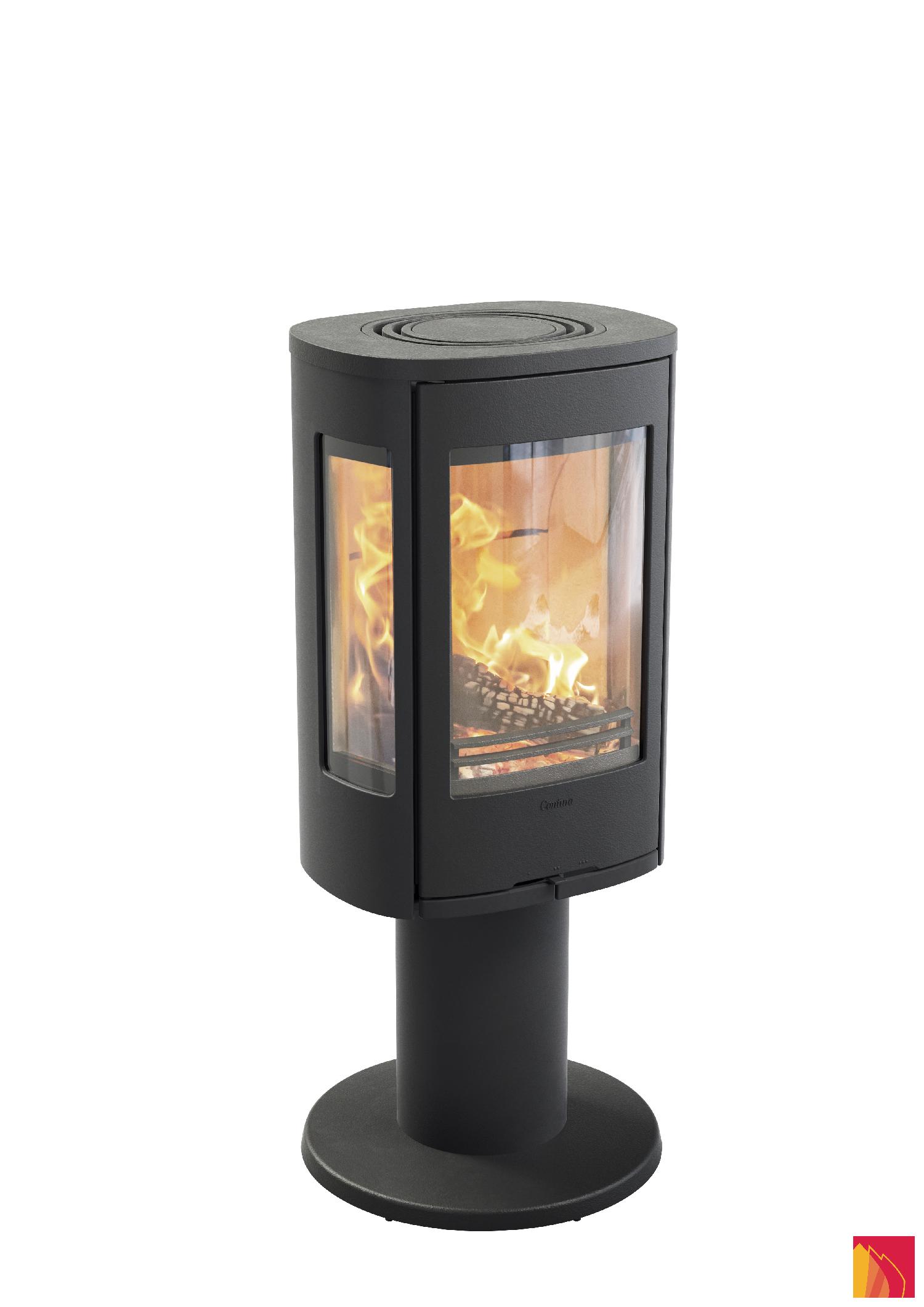 Losing your eyes in the twirling flames of a wood fire wherever you are in the room is a luxury few people know about. This small, compact, swivelling stove, with glass on three sides, comes straight out of the Swedish Contura workshops. The 886 has a very modern design and will fit into every nook and cranny, against every wall and even in the centre of every room.