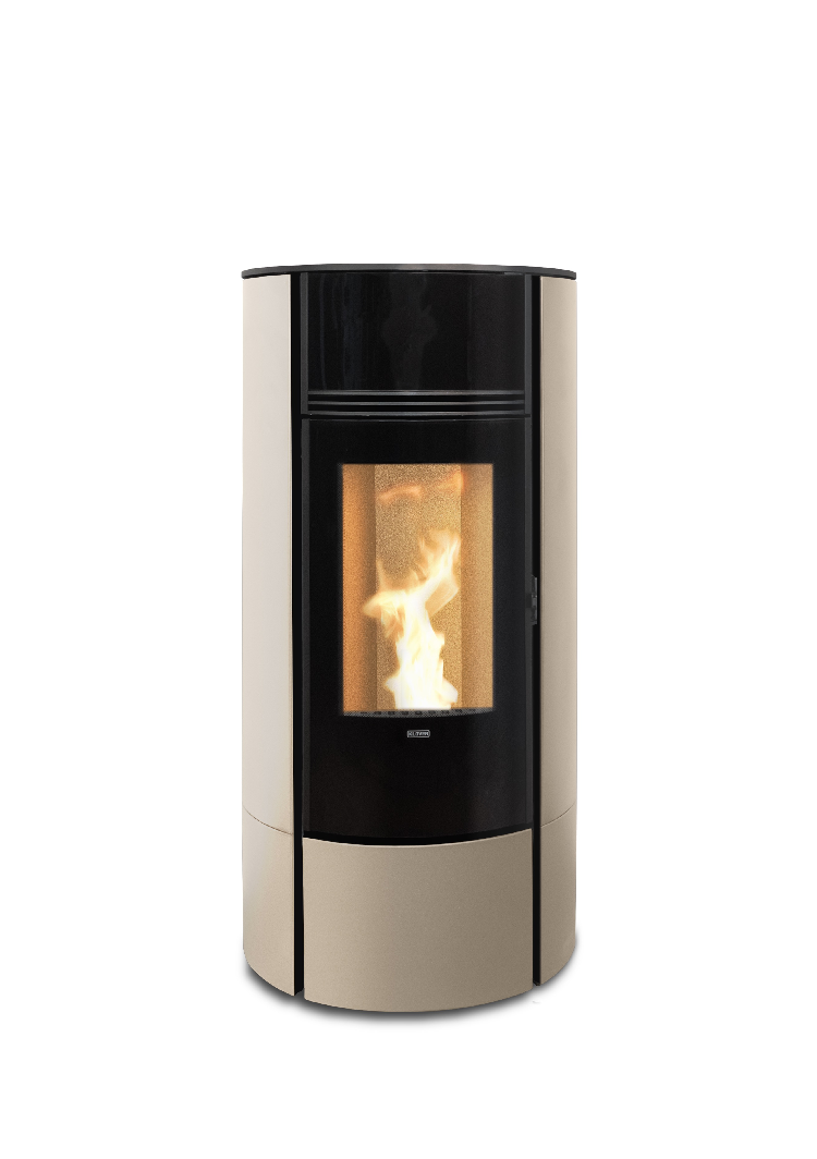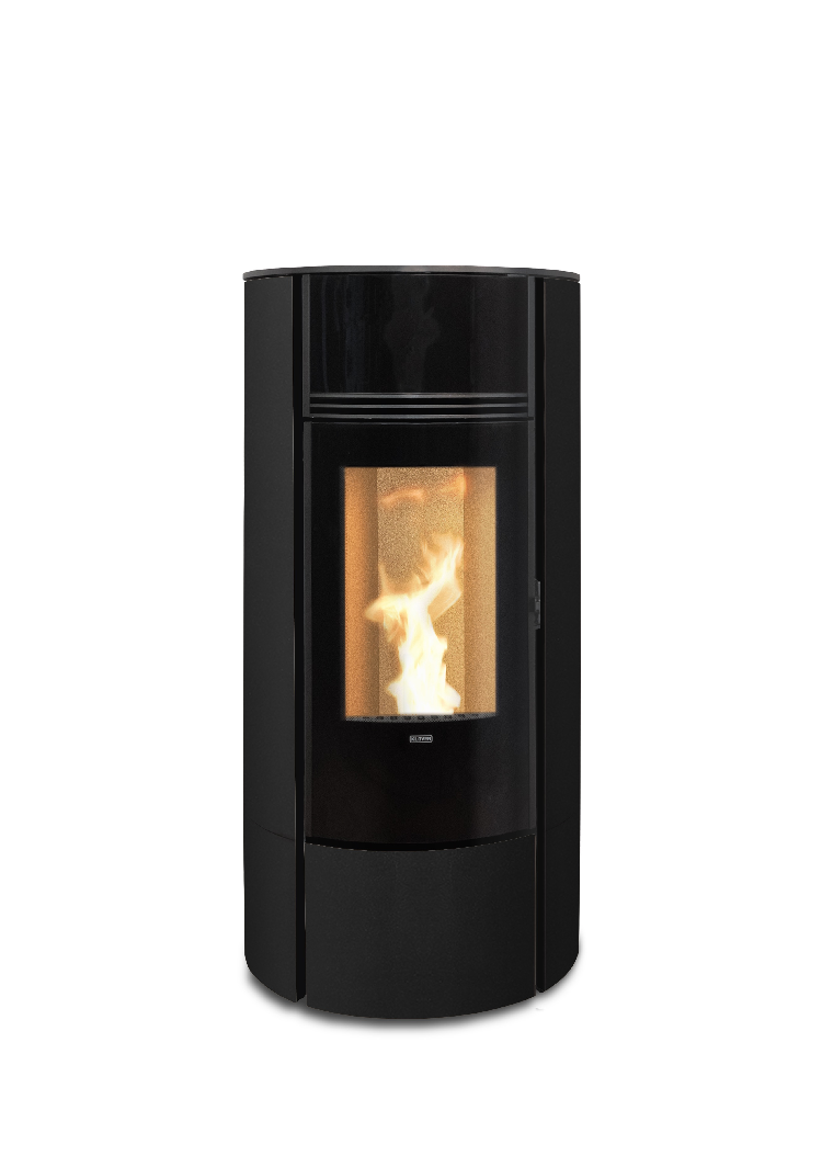Avec sa forme résolument moderne, face avant laqué noire et sa partie inférieure aux couleurs plus douces, le poêle à pellets Klover Super 7 offre une esthétique résolument moderne. Sa porte au galbe parfait s'ouvre largement sur la flamme pour un rendu très chaleureux et une vision du feu optimale. Avec son conduit d'évacuation des fumées sur le dessus, le Super s'allume et s’éteint à distance grâce à l'application wifi, mais se règle aussi directement via sa télécommande qui fait également office de thermostat.